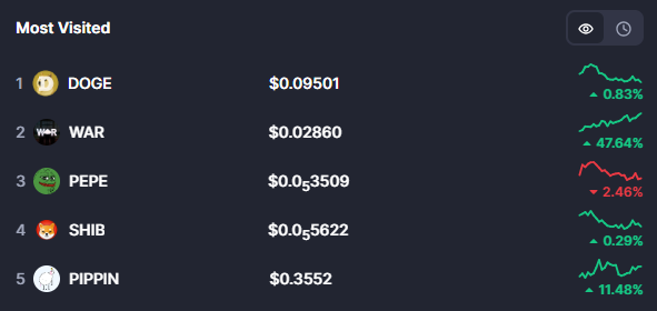 访问量最高的迷因币: