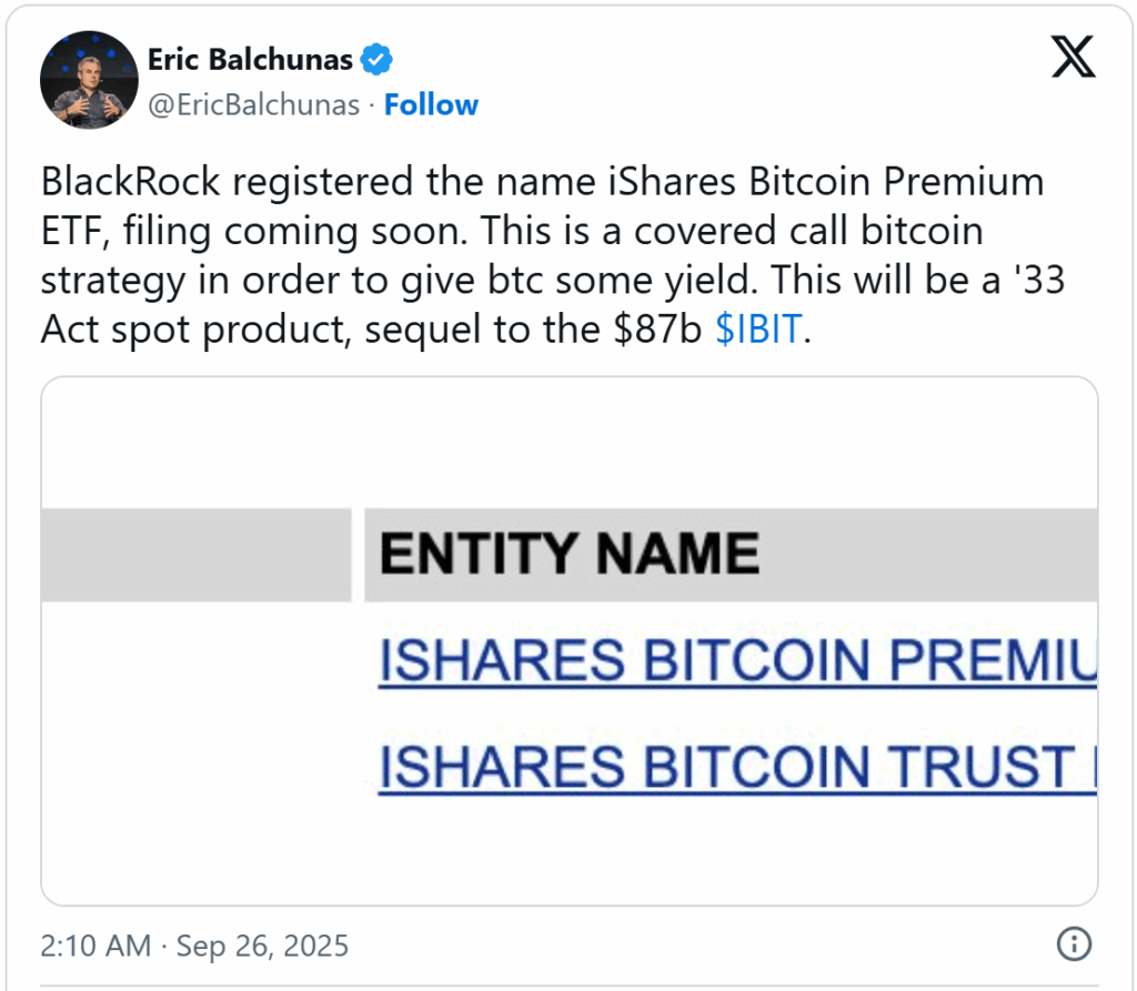 此举将与其旗舰产品iShares比特币信托(IBIT)形成互补——后者目前管理着超870亿美元的现货比特币持仓。通过在产品线中增加收益型ETF,贝莱德向市场释放了拓宽机构级比特币产品范围的信号。