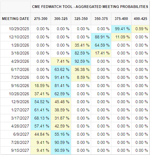 在非农数据存疑的情况下,投资者更加依赖ADP等私营机构数据。根据CME的FedWatch工具,ADP数据公布后,利率交易员对10月29日再次降息25个基点的押注周三飙升至99%。利率市场还定价显示:12月10日连续第三次降息的概率接近90%,而最迟明年4月进行第四次降息的概率更高达93%。