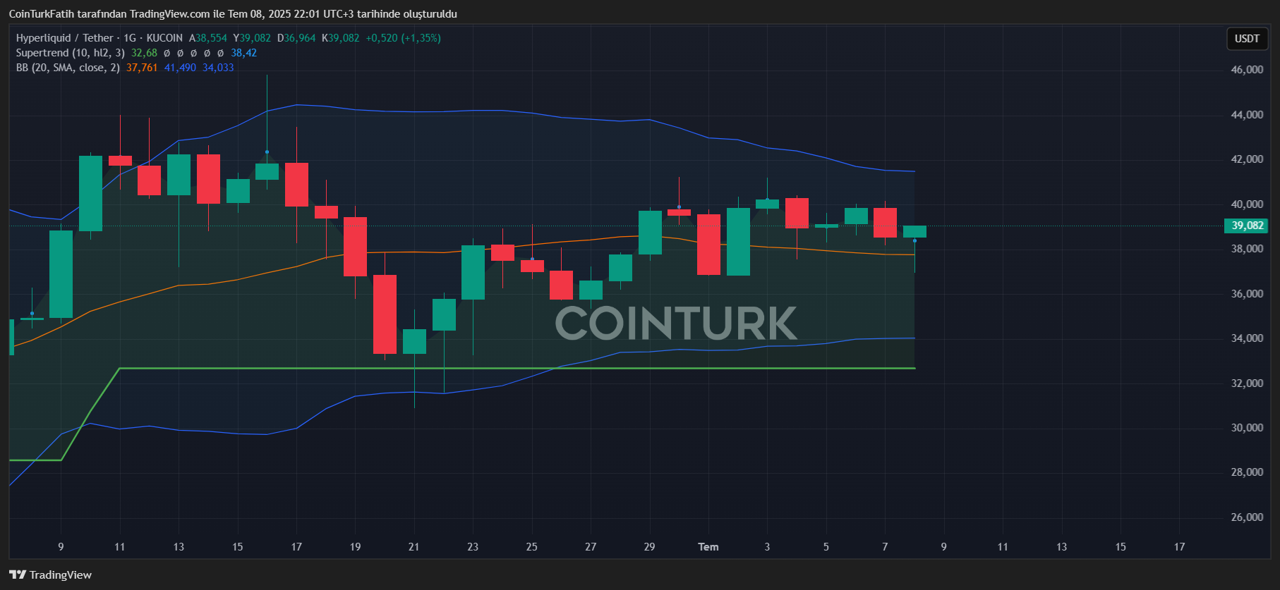 伴随公告发布,HYPE代币从37美元低位反弹至39美元。