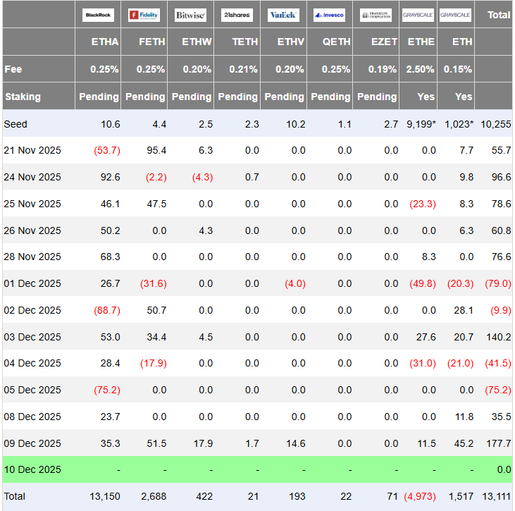 ETH/BTC突破无疑增强了投资者信心。周二ETH ETF单日流入达1.777亿美元,创10月20日以来最高纪录。