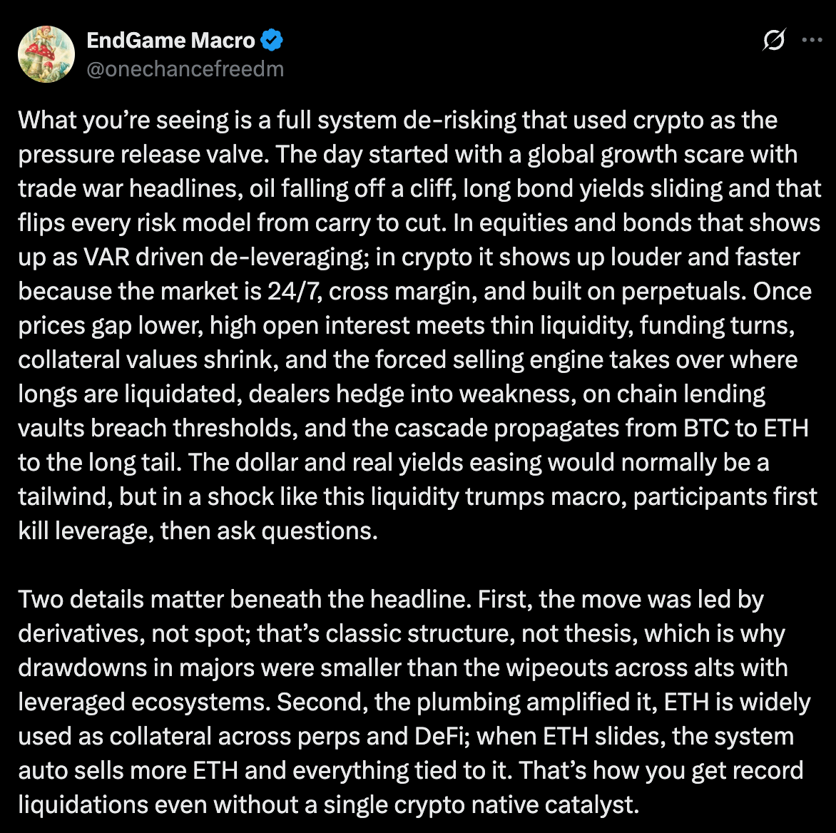 X平台用户EndGame Macro提供的宏观背景分析,阐明了影响近期市场动荡的经济因素,进一步强调了理解更广泛经济信号对加密交易的重要性。
