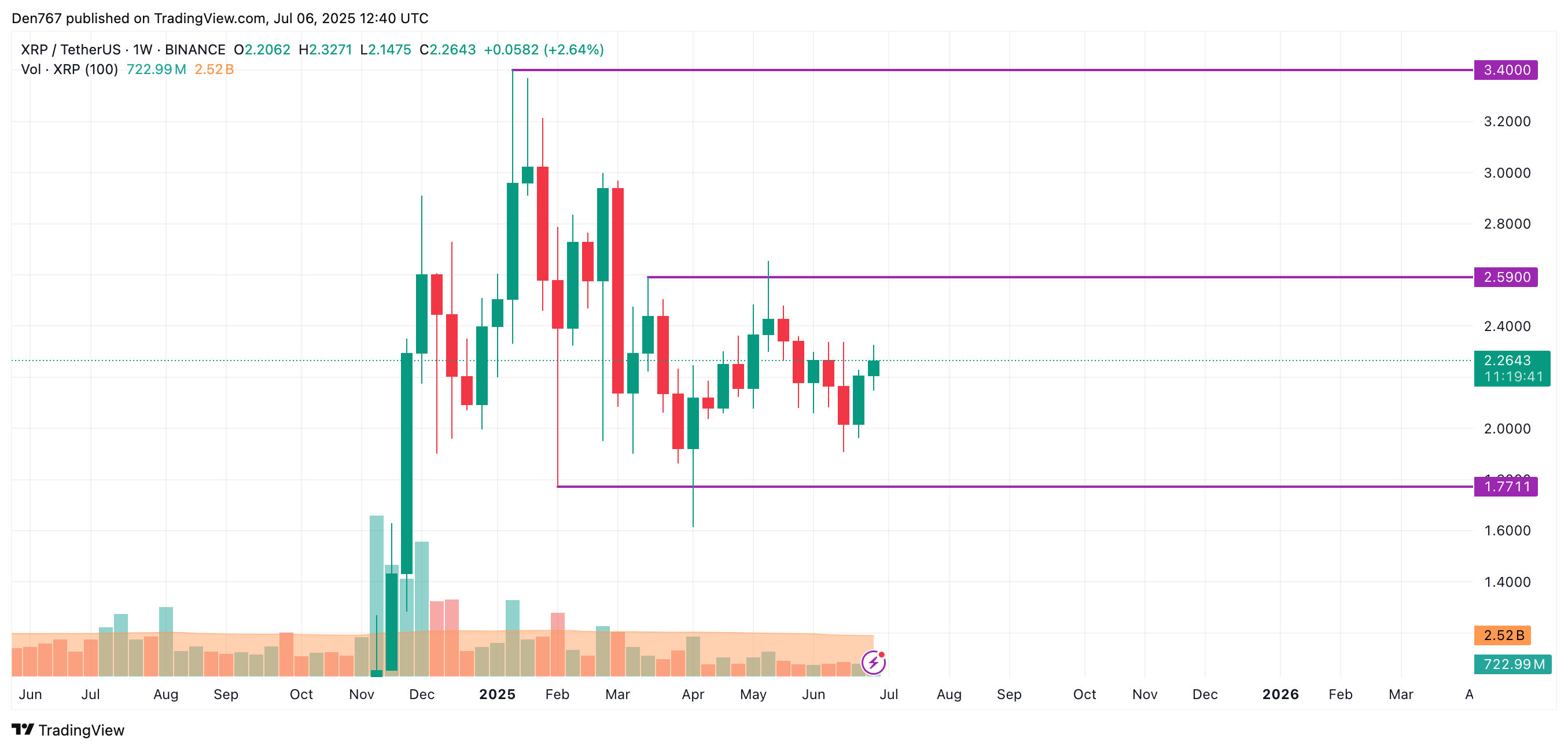 大周期图表中,XRP正在接近2.3293美元阻力位。一旦突破,积蓄的能量可能推动价格冲击2.35-2.45美元区间。