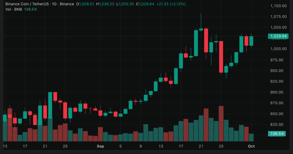尽管遭遇黑客攻击,BNB代币价格仍保持稳定。截至发稿时,BNB交易价格为1030美元,24小时内上涨2.47%。这一稳定性表明市场对该代币的信心未因事件受到明显动摇。