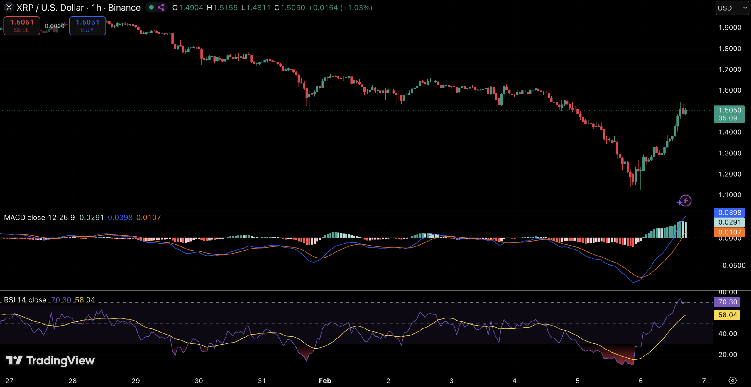 价格已收复1.45-1.50美元区域,该区域目前成为关键的短期枢轴点。若能保持在该区域上方,则可能为进一步上探1.60-1.65美元区域打开大门。然而,若无法维持动能,焦点将重新回到1.30美元附近的支撑位,而本次暴跌的低点1.14美元仍是关键的下行参考位。