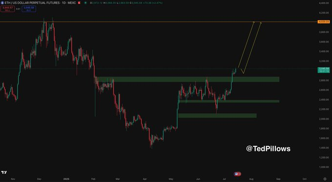 分析师Ted预计ETH将冲击4000美元目标,技术面显示回调即买入机会。市场观察者发现鲸鱼信号指标亮起,永久持有者的吸筹力度达2020年以来峰值。需求激增与供应冲击形成完美风暴。