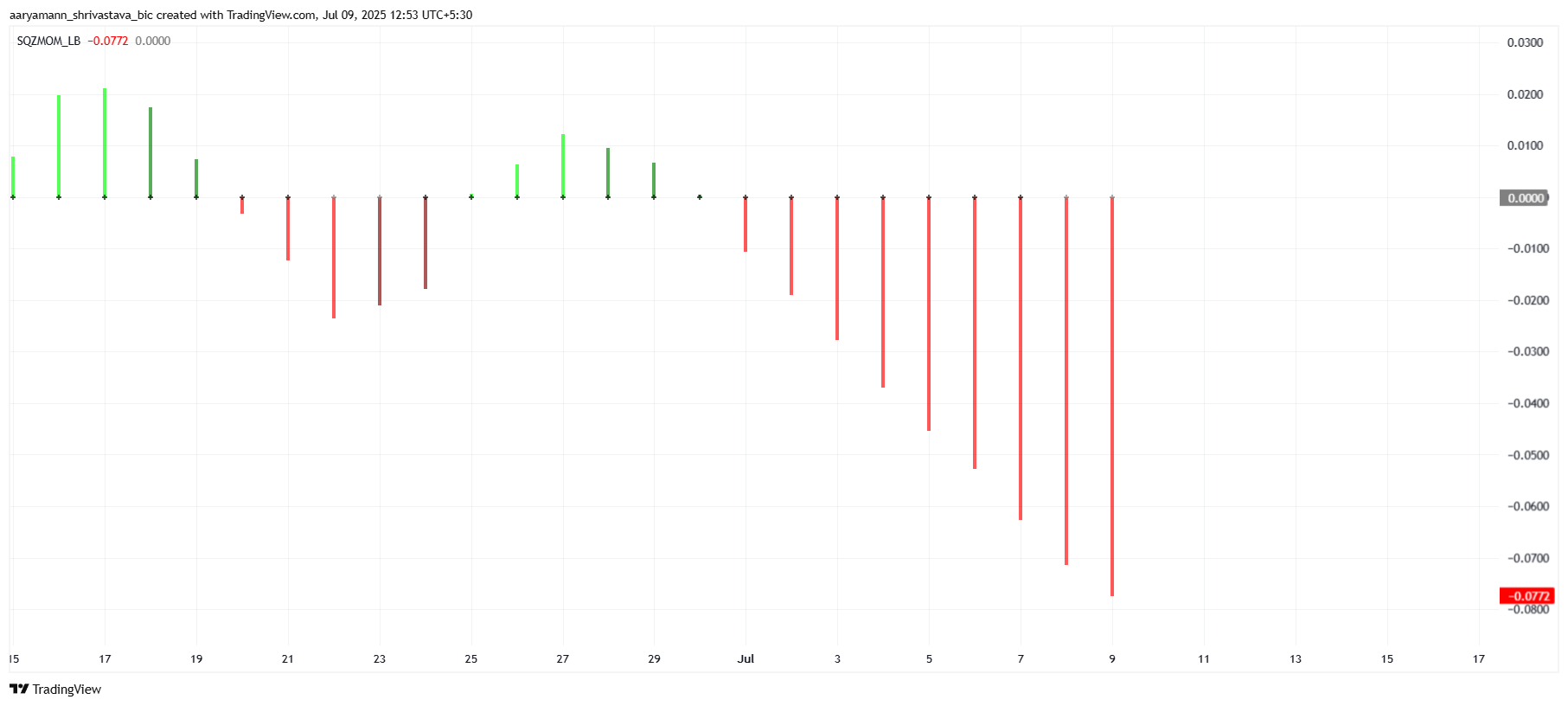 宏观动量指标Squeeze Momentum显示,Pi币正在经历"挤压释放"现象——通常预示着剧烈价格波动。但当前指标中的红色柱体表明熊市动能仍在延续,这种挤压释放更可能意味着进一步下跌而非即刻反弹。