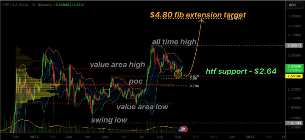从2.64美元的回升表明该资产仍处于强劲上升通道中。最新反弹在技术形态上形成了更高的低点,证明尽管存在短期回调压力,看涨趋势依然有效。这种持续看涨的市场结构为下一阶段价格走势奠定了坚实基础,市场普遍预期XRP将向4.80美元目标位进发。
