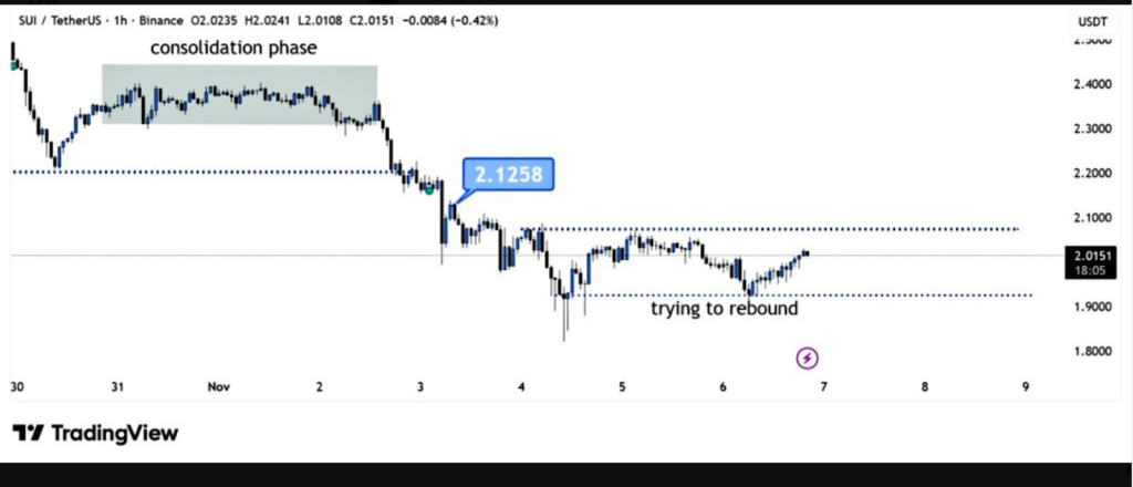 市场数据显示,SUI在经历长期下跌趋势后进入整固阶段。分析师平台BitGuru指出,该代币在破位下行前维持横向震荡,现已触及1.90美元支撑区域。分析显示买家正尝试将价格推高至2.10美元附近的下一个阻力位。