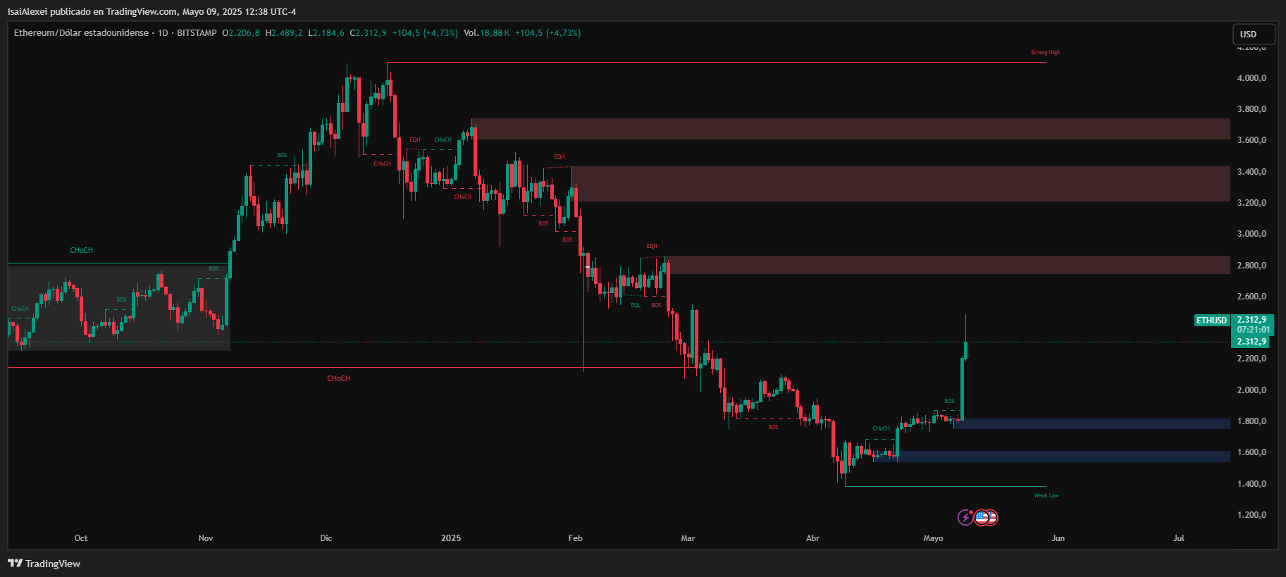 以太坊当前价格为2,309.40美元,日内上涨+4.57%,延续了从近期低点1,400美元附近的强劲反弹。过去一个月,ETH涨幅达+56.82%,过去一周上涨+25.61%,表明看涨信心回归。