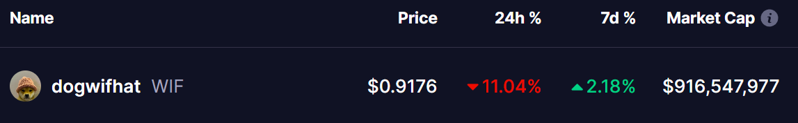 WIF今日呈现下跌态势,跌幅达11%,几乎抹去其本周全部涨幅。更重要的是,其最新价格走势正显现出一个熟悉的形态,可能暗示着下一波行情方向。