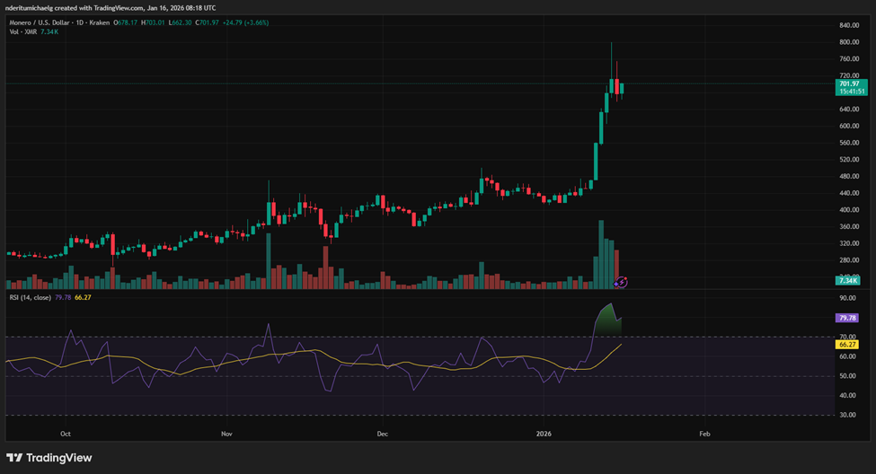 门罗币(XMR)本周价格飙升超40%,创下历史新高。