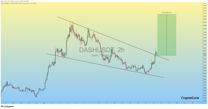 随着DASH完成下降楔形突破确认,且交易活跃度稳步提升,该资产价格走势显现新动能,表明市场买方参与度坚实。