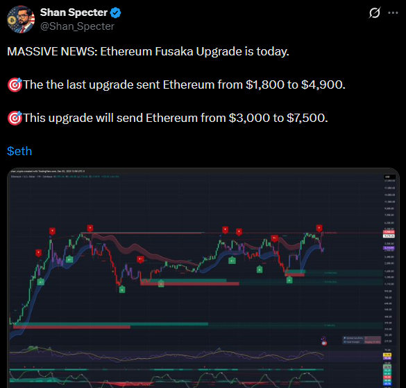 以太坊Fusaka升级刚刚生效,分析师热议此前升级后出现的ETH价格大幅飙升行情。