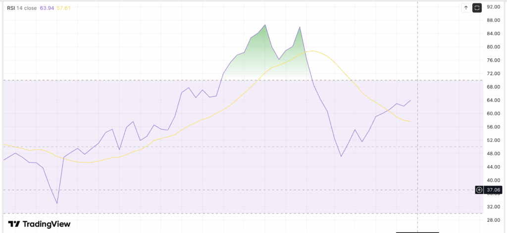 BNB动量指标仍处于健康区间,相对强弱指数(RSI)维持在64,远未进入超买区域,为技术性回调前的继续上涨留出空间。