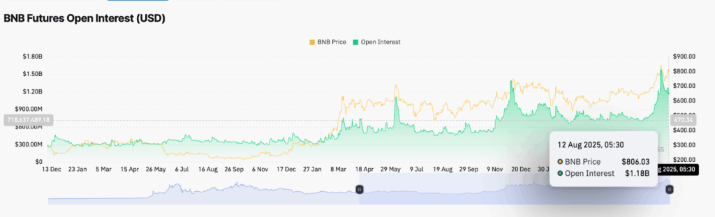 期货未平仓合约达11.8亿美元(接近15亿峰值),叠加BNB生态的DApp、NFT市场和RWA集成扩张,形成超越单纯投机的基本面支撑。