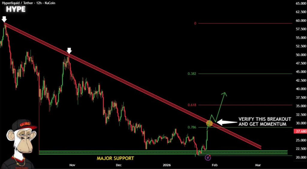 关键洞察:HYPE自28美元反弹,现交易于30美元上方,此价位与趋势方向紧密相连。