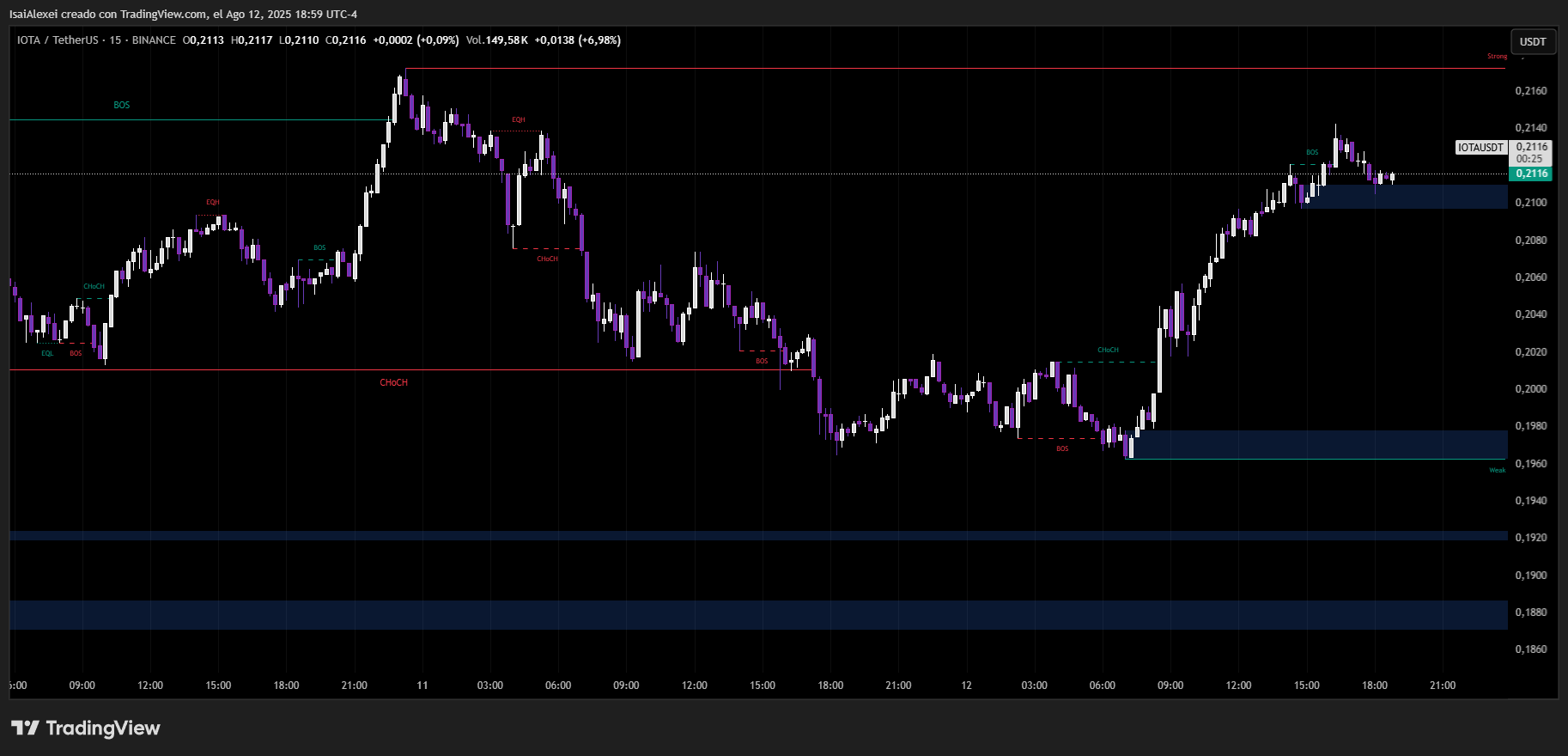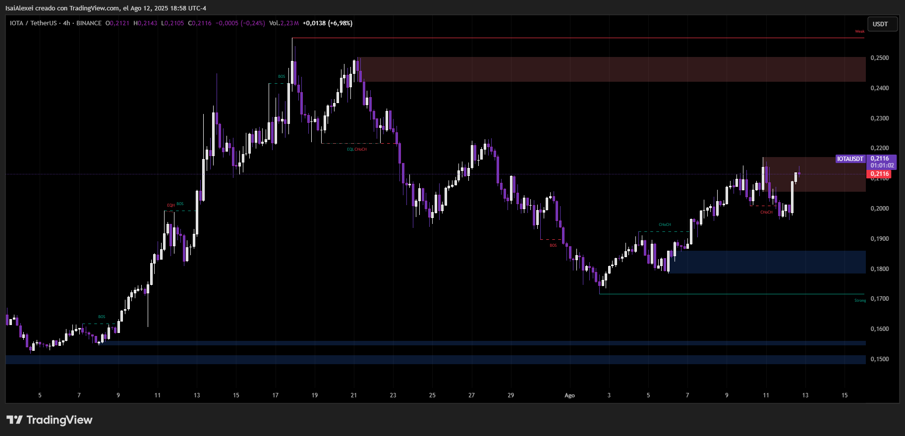 技术面显示IOTA已突破短期均线,正在形成上升通道形态。突破0.22美元关口可能确认新一轮上涨。分析师指出该资产或已完成长期积累阶段,未来可能启动艾略特波浪第三浪冲击0.8美元目标位。