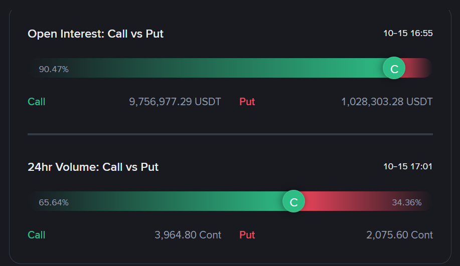 币安交易所数据显示,过去一周SOL看跌/看涨期权成交量比率持续低于90%,反映市场对中性或看空头寸兴趣寡淡。历史数据显示,当该比率突破180%时往往预示调整——最近一次出现在9月20日SOL十一天暴涨26.7%之后。