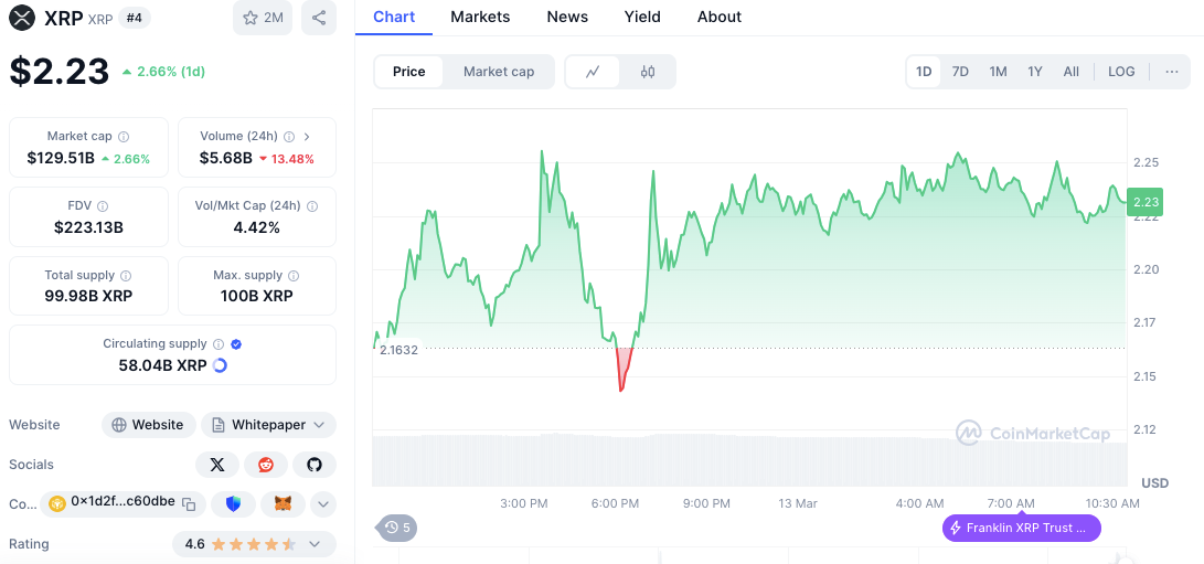 自有关诉讼可能被撤销的报道出现以来,XRP已上涨3.39%。价格上涨反映了投资者对有利结果的乐观情绪。