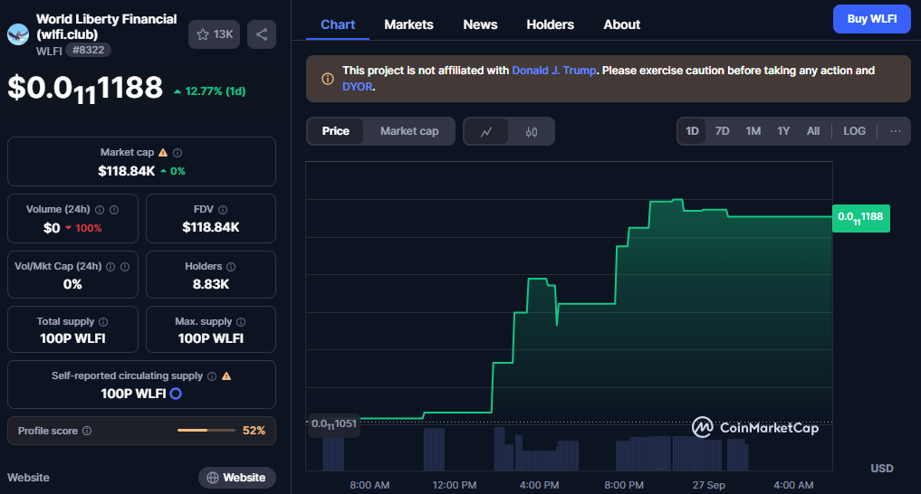 世界自由金融(WLFI)近日以106万美元回购604万枚代币。此举恰逢埃里克·特朗普在社交媒体发文呼吁"逢低买入"。逢低买入!——埃里克·特朗普(@EricTrump)2025年9月26日