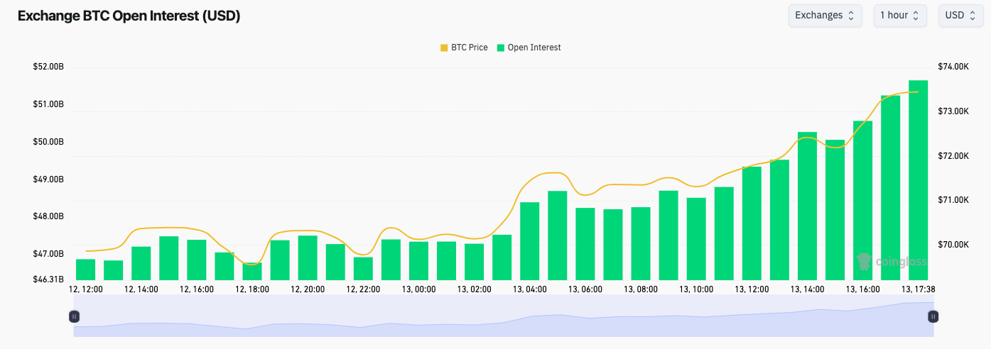 美国通胀数据支撑加密货币和股市走高,比特币价格再次测试74,000美元阻力位。交易者对后续走势产生分歧,“看跌回测”可能导致价格再度崩溃。BTC/USD最终重新站上其50日移动平均趋势线。