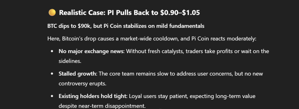 这是悲观的结果。在这种情况下,比特币跌至90,000美元,而Pi币自身的弱点使情况更加恶化。