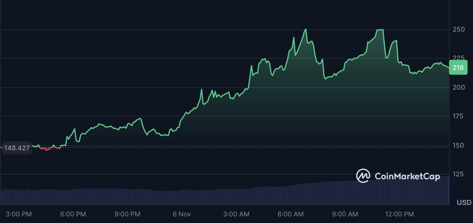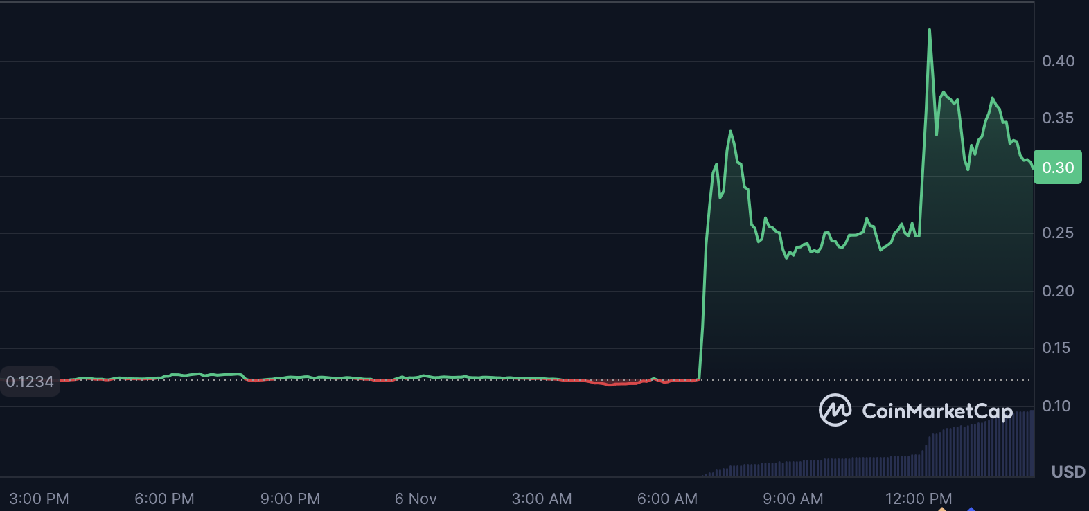 当日表现冠军SAPIEN在11月6日登陆币安现货和保证金交易,配合面向BNB质押者的意外空投,涨幅达192%。双重催化剂使交易量暴增3955%,这个聚焦AI的数据协议市值冲至9000万美元,完全稀释估值(FDV)达1.31亿美元。