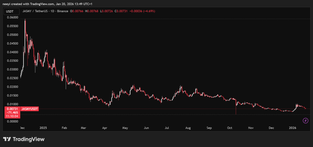 JasmyCoin不再仅仅依赖叙事潜力。Jasmy链引入了切实的基础设施,增强了更广泛的生态系统。这一转变解释了为何尽管价格走势平淡,但2026年在结构上感觉比2025年更加强劲。