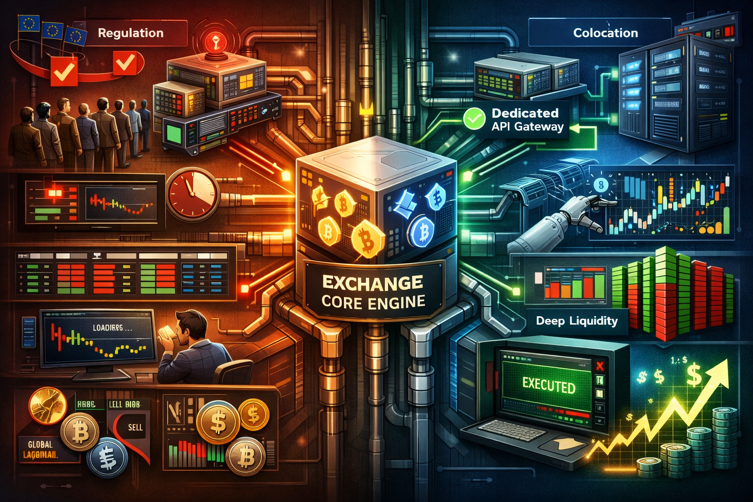 真正的“重型武器”始于服务器共置。若你的服务器与交易所服务器位于同一数据中心,延迟将降至微秒级。在稳定币监管制造秒级价格断层的环境中,共置让你能先于所有人发现这些异常。你实质上置身于交易所内部,这使得你的算法能对最细微的流动性变化即时反应,在主流市场察觉之前夺取订单簿中的最优报价。