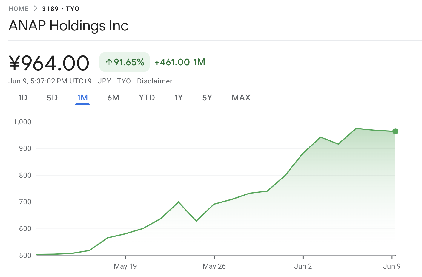 日本服装品牌ANAP Holdings正以110亿日元比特币购入计划加入企业级比特币收购行列。该公司将立即投入80亿日元,并在后续增资后完成剩余金额的转换。此次采购资金来源于公司新发行的股票。过去一个月内,ANAP股价已飙升逾90%。