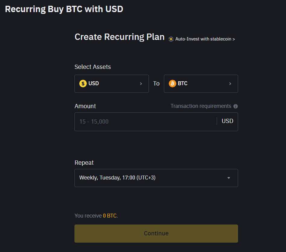 币安还提供“定期购买”选项,允许用户创建计划,选择资产、指定金额并设定重复购买时间。
