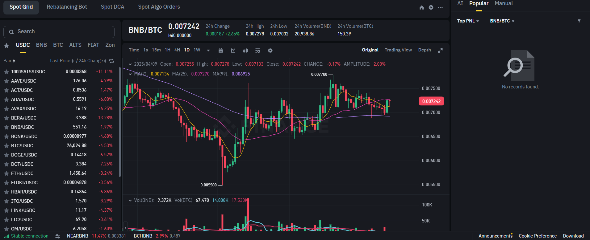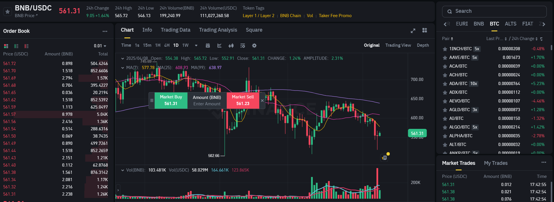 币安现货允许用户交易加密货币,提供带有技术指标、图表、信息、交易数据和分析等的实时价格。