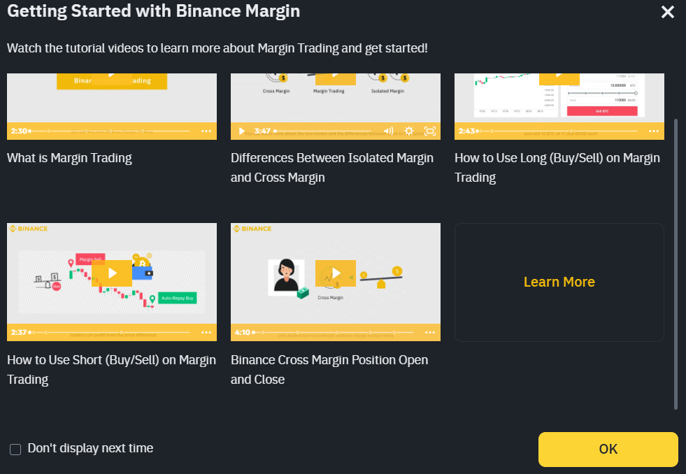 为帮助用户开始使用币安保证金,交易所提供了教学视频以了解更多关于保证金交易的信息。