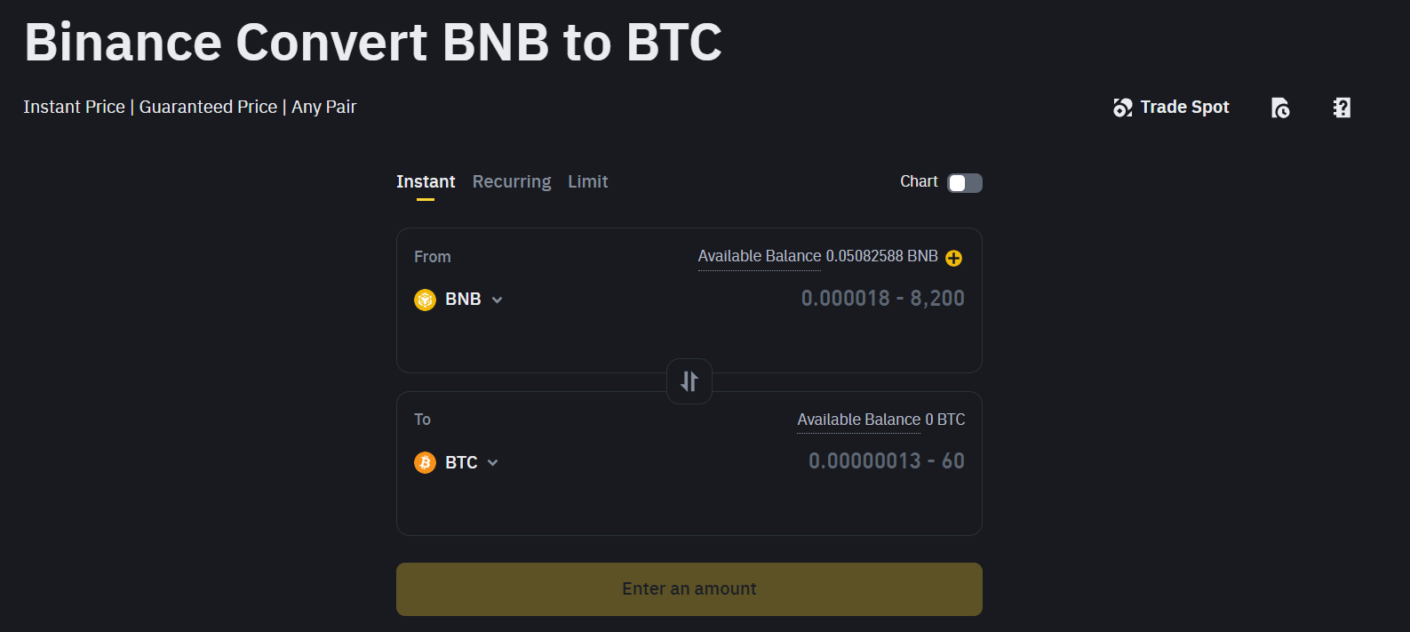 在我们的评测中发现,用户可通过币安兑换转换资产,可选择即时或定期转换,同时也可设置限价。该兑换功能零费用,并提供超过2000个交易对。
