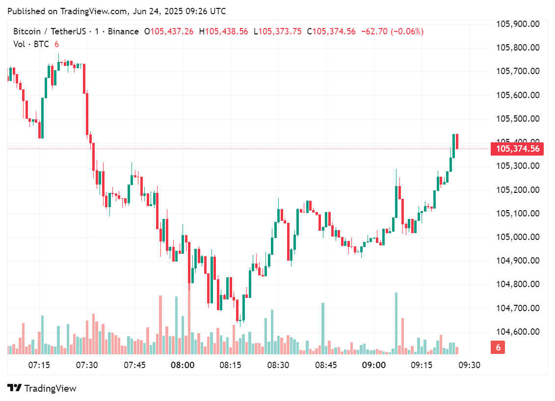 随着美国促成停火协议后以色列与伊朗紧张局势降温,比特币实现奇迹般反弹,重新站上105,000美元关口。据