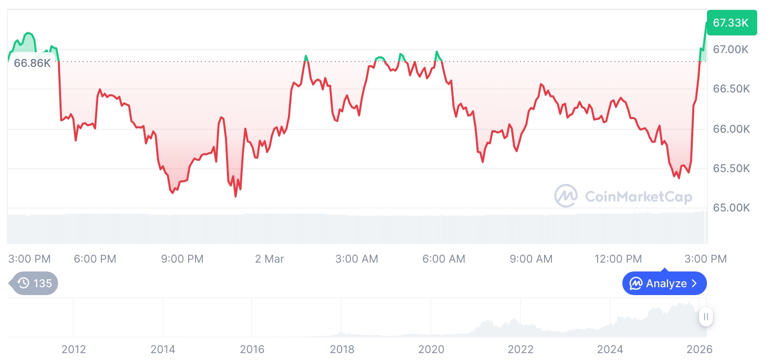 山寨币逆势突围,一周涨幅突破两位数 过去一周,包括Near Protocol、Polkadot和Jupiter在内的多个山寨币实现两位数涨幅,表现大幅领先比特币。在比特币尝试复苏后,交易者开始转向波动性更高的资产类别。数据显示,Near Protocol过去七日上涨19.4%,Polkadot涨幅达16.5%,Jupiter亦攀升15.8%。 相比之下,同期比特币价格基本持平。受地缘政治局势影响,比特币于2月28日跌至63176美元低点,随后回升4.7%,目前徘徊在66100美元附近。此次市场分化正检验着山寨币能否在没有比特币引领的情况下保持上涨动能。 技术性反弹与市场情绪背离 尽管加密货币生山寨币表现超越比特币 周涨幅双双破十1 小时前