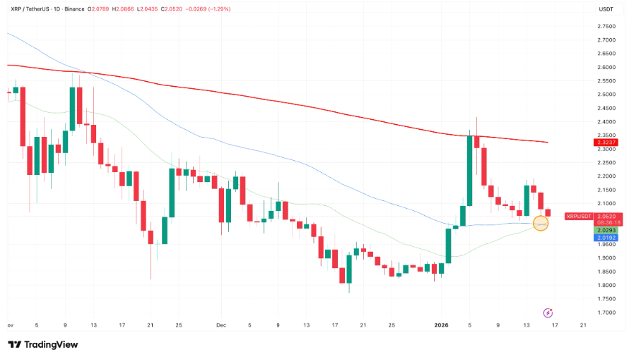 XRP已正式形成2026年首个金叉形态,这标志着价格可能转向看涨趋势。1月13日,XRP的23日简单移动均线上穿50日均线,这种技术形态在历史上常预示后续价格上涨。当前价格维持在2.06美元上方,投资者预期短期将继续上行。