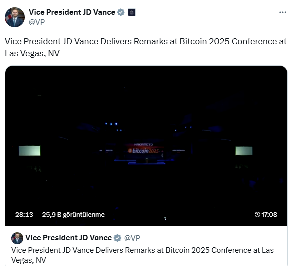在拉斯维加斯举行的比特币2025峰会上,副总统JD·万斯强调了比特币及加密货币对国民经济的重要意义。特朗普政府青睐稳定币因其能提升债券需求,而比特币作为替代性价值存储方案的崛起正符合特朗普的利益诉求——他正积极推动提升比特币的市场地位。