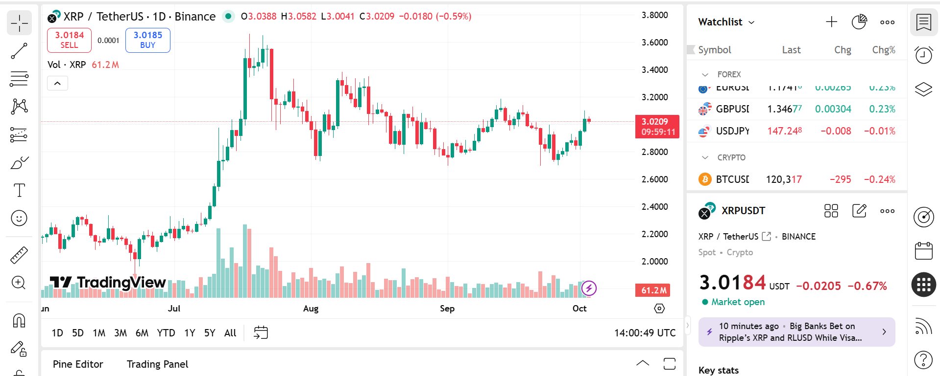 尽管具体时间表尚未明确,当前XRP价格仍主要受监管动态和整体市场流动影响,而非合作传闻驱动。