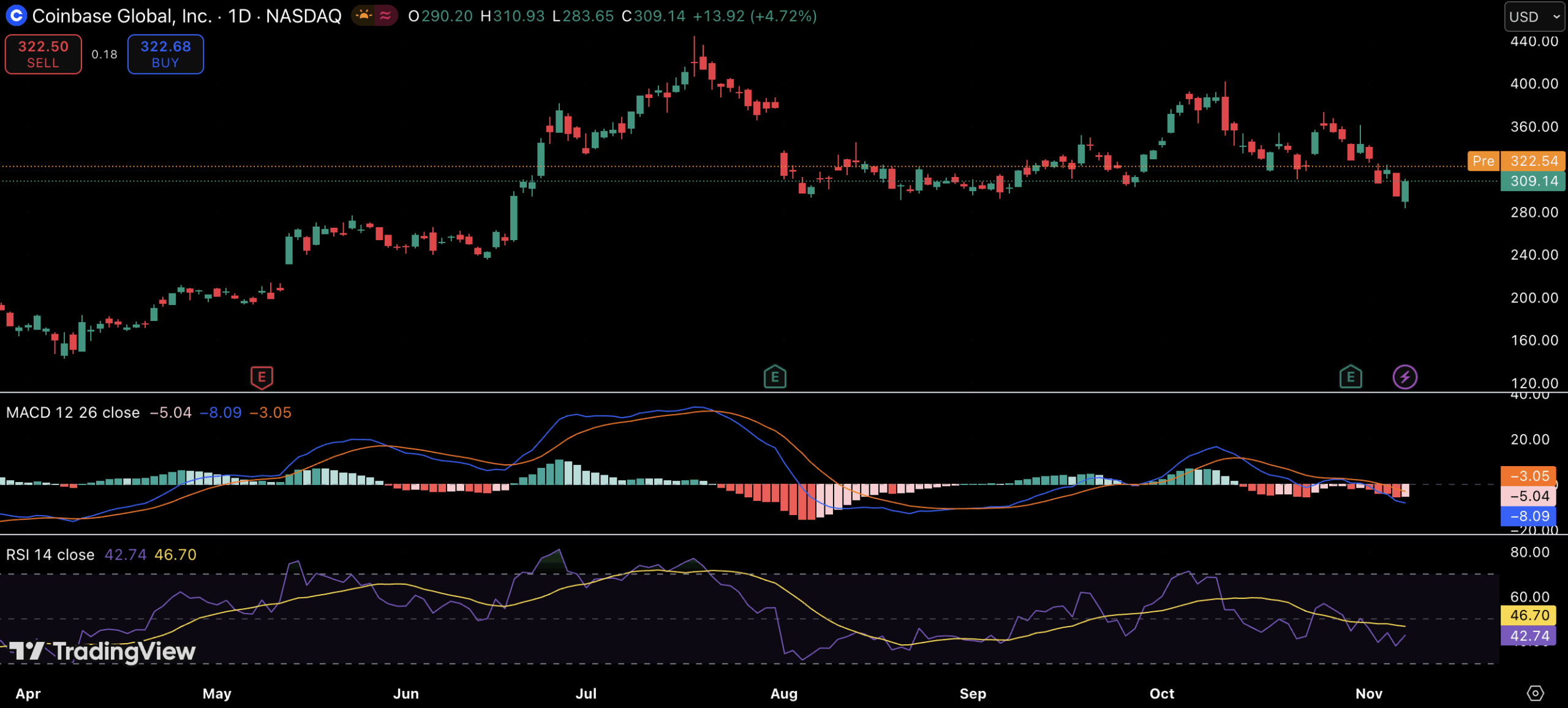 公告发布后,Coinbase Global(纳斯达克代码:COIN)股价应声上涨。该股以309.14美元收盘后,盘前交易时段再涨4.38%,升至约322.68美元。