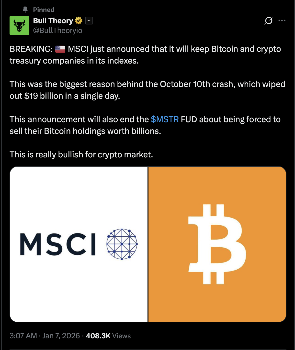 此前当微策略等公司通过增发股份筹集比特币采购资金时,跟踪明晟指数的被动基金需按比例购入这些股份,从而形成稳定需求。新规实施后,这种自动买入机制不再适用,削弱了微策略股票的被动需求核心来源。