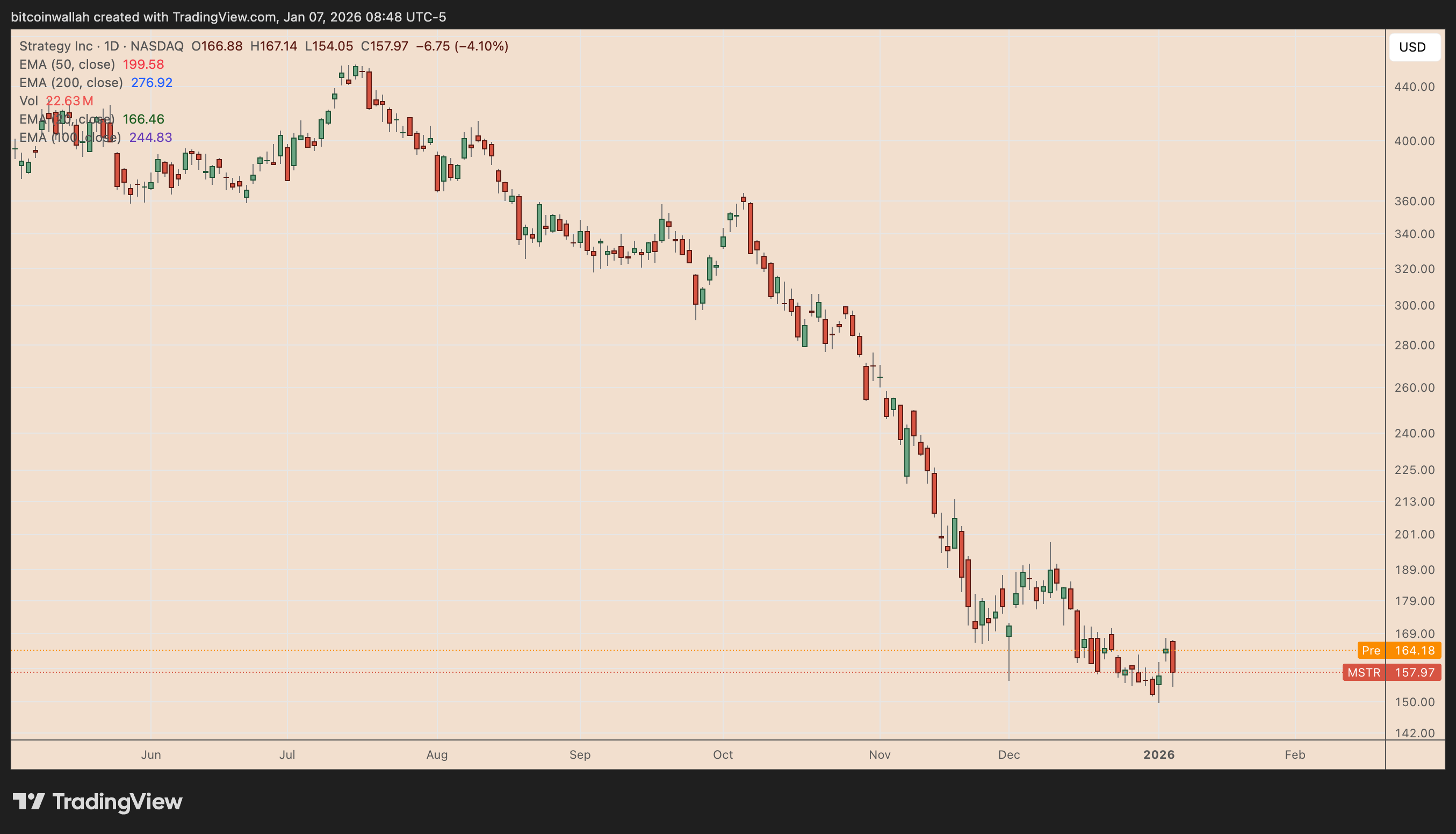 简言之,由迈克尔·塞勒领导的微策略公司在筹集额外比特币购买资金时可能面临限制。分析师Crypto Rover对此表示"明晟公司的声明愚弄了所有人",他在周三发文中指出:"认为此事影响轻微者需知,微策略在2025年通过增发股份筹集逾150亿美元资金。若2026年尝试类似操作,由于缺乏被动资金买入,其股价或将遭遇剧烈下跌。"微策略股价周二已下跌4.10%。