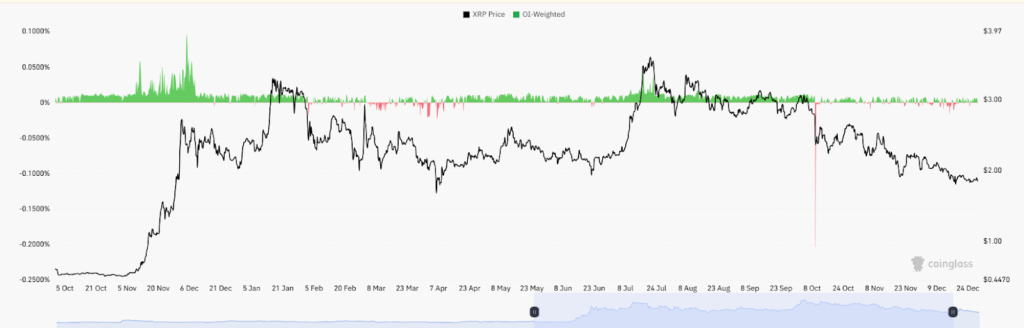 XRP在1.95美元附近波动,需突破该关键点位以确认趋势延续并获得更广泛的市场认同。随着衍生品市场资金费率回归中性,各大交易所的杠杆头寸正在重置,交易者普遍采取谨慎持仓策略。
