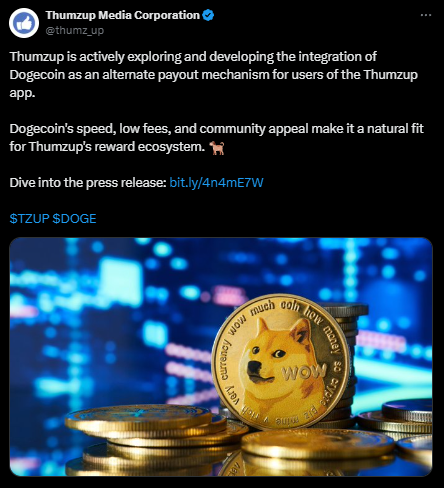 狗狗币(DOGE)动态:Thumzup探索支付整合引发市场波动