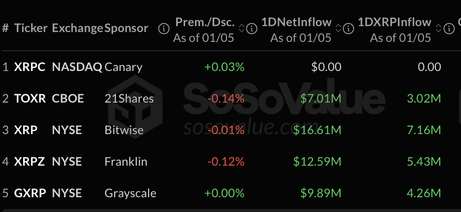 美国现货XRP ETF在1月5日录得4800万美元净流入,实现连续七周资金净流入,累计流入达12.3亿美元。其中富兰克林邓普顿旗下产品单日贡献2500万美元,凸显机构集中参与态势。