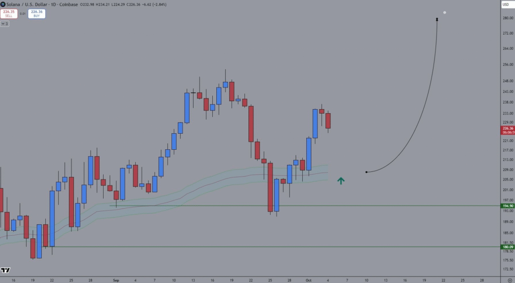 Solana价格走势显示可能回探210美元支撑位。技术分析表明,这种回调可能是短暂的,随后将开启冲击历史新高(ATH)的征程。