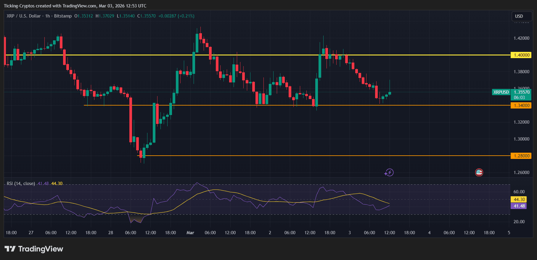 阻力位(1.45-1.50美元):XRP需收复该区域才能扭转当前看跌势头