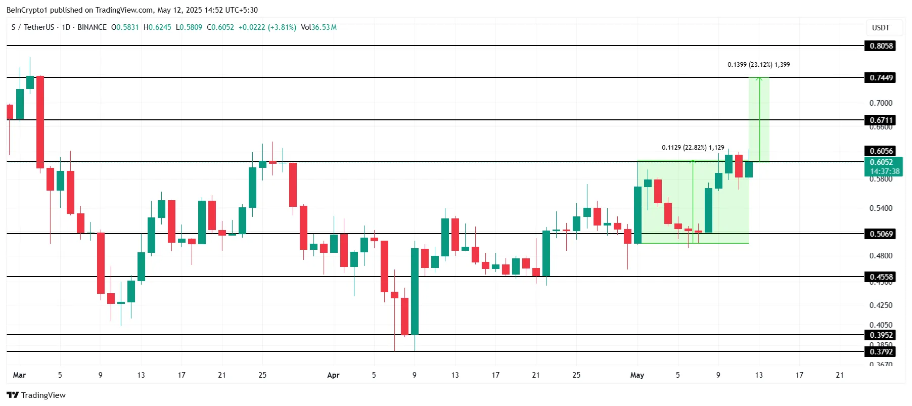然而,如果Sonic在短期内出现获利回吐,可能无法突破0.60美元的阻力位。若跌破该水平,Sonic可能回落至0.50美元,使当前看涨前景失效。