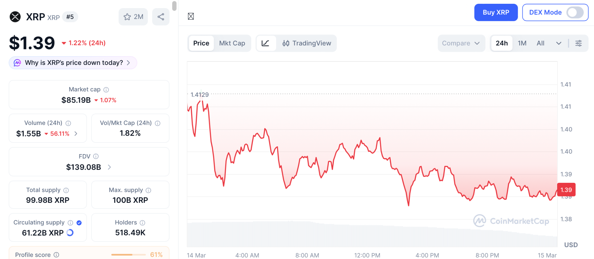 XRP价格预测:处于1.39美元下降通道,若模式突破目标8.6美元